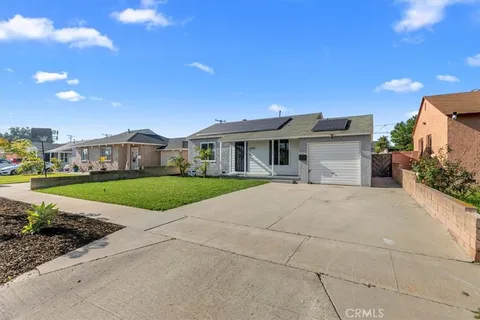 Welcome to this charming 3-bedroom, 2-bathroom Bellflower home, ideally situated on a quiet residential street. This light-filled residence offers a functional and comfortable floor plan with inviting living spaces and generously sized bedrooms. The recently renovated kitchen features ample cabinetry, updated finishes, and plenty of workspace - perfect for everyday living and entertaining. The primary bedroom includes a private en-suite bathroom for added comfort and convenience. Additional highlights include a newer AC/Electrical Panel, providing peace of mind for years to come, and a leased solar system that offers energy-efficiency benefits (buyer to assume lease). Step outside to a large, spacious lot with a backyard ideal for outdoor entertaining, gardening, or future expansion possibilities. Conveniently located near schools, parks, shopping, dining, and easy freeway access, this home presents a fantastic opportunity for homeowners or investors looking to enjoy and add value in a desirable Bellflower neighborhood.