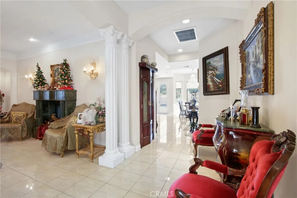 Huge Price Reduction! Seller Now Ready To Move. First time on the market, original owner, was on Hold but not Active. Welcome to your luxurious estate in the heart of Downey! Step into elegance and comfort with this exquisite 4-bedroom, 5-bathroom residence boasting 4,674 living square feet. Grand entrance with 15 foot high columns made of real stone. Den and Formal Dining Room can be converted into 5th and 6th bedroom, owner willing to help. Developer Owner built this for him and his wife, second floor has not been used. As you enter, be greeted by the spacious living area adorned with tasteful finishes and abundant natural light with 10 foot high ceilings. The gourmet kitchen, a chef's delight, has granite countertops, and custom cabinetry, perfect for culinary endeavors and entertaining guests. Retreat to the master suite, a sanctuary of relaxation, featuring roman columns and a lavish ensuite bathroom. Three additional bedrooms offer versatility and comfort for family members or guests, each meticulously designed for tranquility and style. Home features 2 fireplaces made of real marble stones, 8 foot solid doors throughout and closets as big as a bedroom. Huge second floor balcony measures 15x13 and has breathtaking views. Outside, discover your private paradise - an enticing swimming pool perfect for refreshing dips on warm summer days, while the meticulously landscaped grounds provide the ideal setting for outdoor gatherings and twilight dining. Cul de sac consist of 4 homes built by the same Developer Owner in 2005, completely changing the landscape and design in the North Downey area. With its impeccable craftsmanship, premium amenities, and prime location in Downey, this home epitomizes luxury living at its finest.