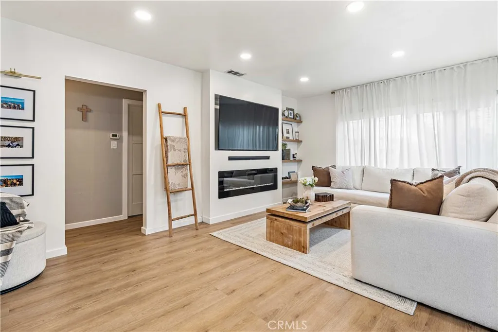 Welcome to this cozy, move-in-ready single-story home featuring modern upgrades throughout. Enjoy luxury vinyl flooring, a custom fireplace TV wall with recessed mount, and a beautifully remodeled kitchen completed within the last 12 months. New appliances are included, along with a washer and dryer for added convenience. The bathroom has been fully remodeled, and the home features upgraded windows and doors, a new 50-gallon water heater, and a freshly painted exterior. Step outside to a landscaped yard with lighting, newly added stamped concrete, a new patio cover, and vinyl gates - perfect for relaxing or entertaining. This home is truly turnkey and ready for its next owner.